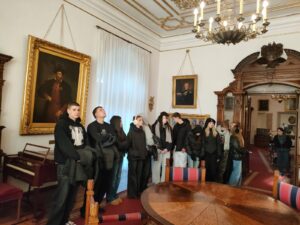 Uczniowie klasy 2ac i 4e udali się z wizytą do znanego z unikalnego zespołu pałacowo – parkowego Kórnika. W skład zespołu wchodzi m.in. Biblioteka Kórnicka.Jest to jedna z najbogatszych bibliotek w Polsce, założona przez Tytusa Działyńskiego. Sam zamek natomiast mieści wspaniałe wnętrza mieszkalne udostępniane gościom. Biblioteka w swych zbiorach posiada bezcenne rękopisy, stare druki, a prezentowane wnętrza zamku mają niemal w pełni zachowane elementy wystroju z XIXw., pamiątki narodowe i rodzinne rodu Działyńskich i Zamoyskich. W Bibliotece Kórnickiej uczniowie II LO im.Jana Kasprowicza mieli okazję uczestniczyć w warsztatach tworzenia papieru czerpanego i umiejętności pisania piórem i stalówką. Zwiedzili również unikalne wnętrza zamku i poznali historię najsłynniejszej właścicielki zamku – Teofili z Działyńskich Szołdrskiej – Potulickiej, zwanej Białą Damą.